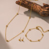 Set Acero Danza Dorada ajustable entre talla 6 y 8, set por 2 unidades. Diseño clásico y delicado para usarlo con tu ropa preferida, ya sea deportiva, formal o informal con un toque muy femenino, elegante y de moda. Para ver otros diseños disponibles en collares para mujer, da clic aca.