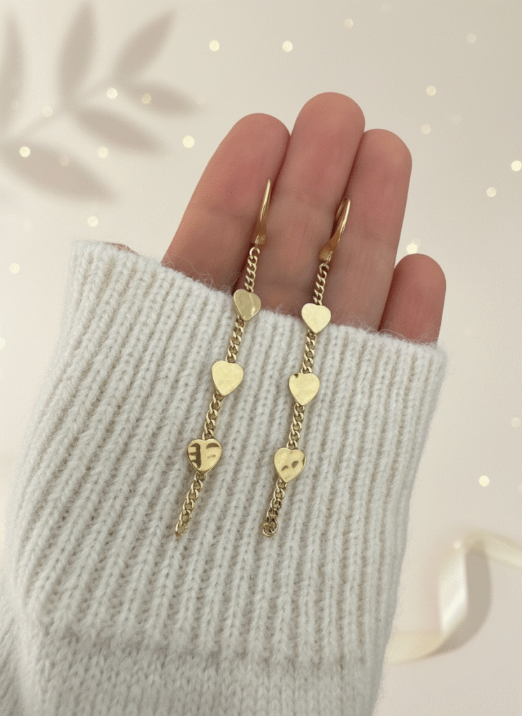 Aretes Acero Corazon de-Luz en tono dorado con largo total de 6.5 cms. Diseño divertido, diferente con un estilo delicado para combinarlo como quieras, ideal para tu look casual o informal o ir a trabajar y con un toque muy femenino y de moda. Para ver Otros productos disponibles en aretes.