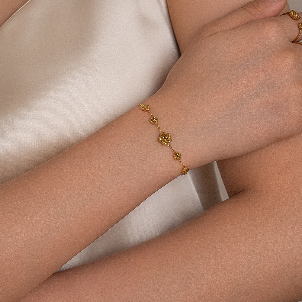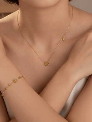 Set Acero Mujer Florecer en tono dorado con largo de cadena de 40 y 16 cms en la pulsera, cadena extensora de 5 cms. Diseño clásico y delicado para usarlo con tu ropa preferida, ya sea deportiva, formal o informal con un toque muy femenino, elegante y de moda. Para ver otros diseños disponibles en collares para mujer, da clic aca.