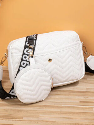 OUTLET Set Bolso Blanco en cuero sintético no rígido, en su interior no cuenta con bolsillos y esta forrado en tela. Ideal para guardar tus documentos y algunas cosas mas de uso personal. Medidas: 20 cms de ancho, 12 cms de alto, 5 cms de profundo. Para ver mas diseños en complementos de moda da clic aca.