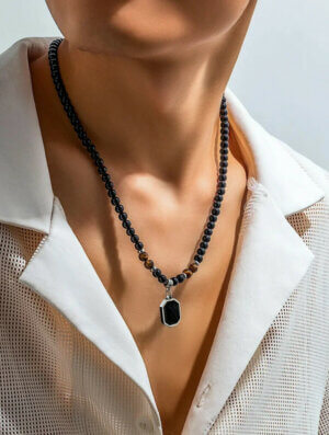 Cadena Hombre Artesanal en acero con largo de 60 cms cadena extensora de 5 cms, realizado en agata y terminaciones en acero. Diseño clásico, elegante y muy varonil para usar en cualquier ocasión. Para ver mas diseños en accesorios para hombre da clic en el enlace.