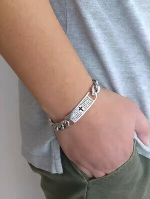 Pulsera Hombre Agata Urbana en terlenca con diámetro de 7 cms y nudo corredizo para ajustar al tamaño de la mano con dije en rodio y balines en acero. Diseño clásico, elegante y muy varonil para usar en cualquier ocasión. Para ver mas diseños en accesorios para hombre da clic en el enlace.