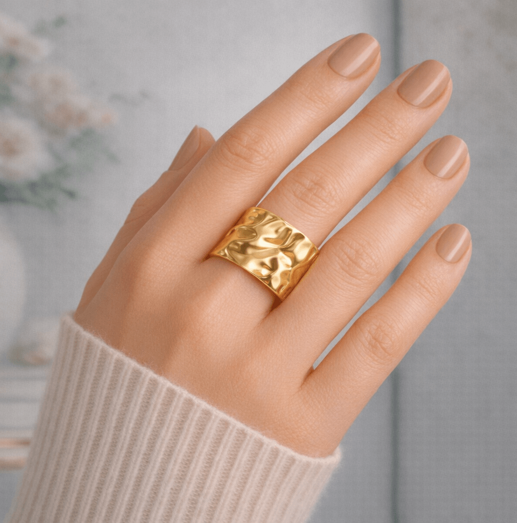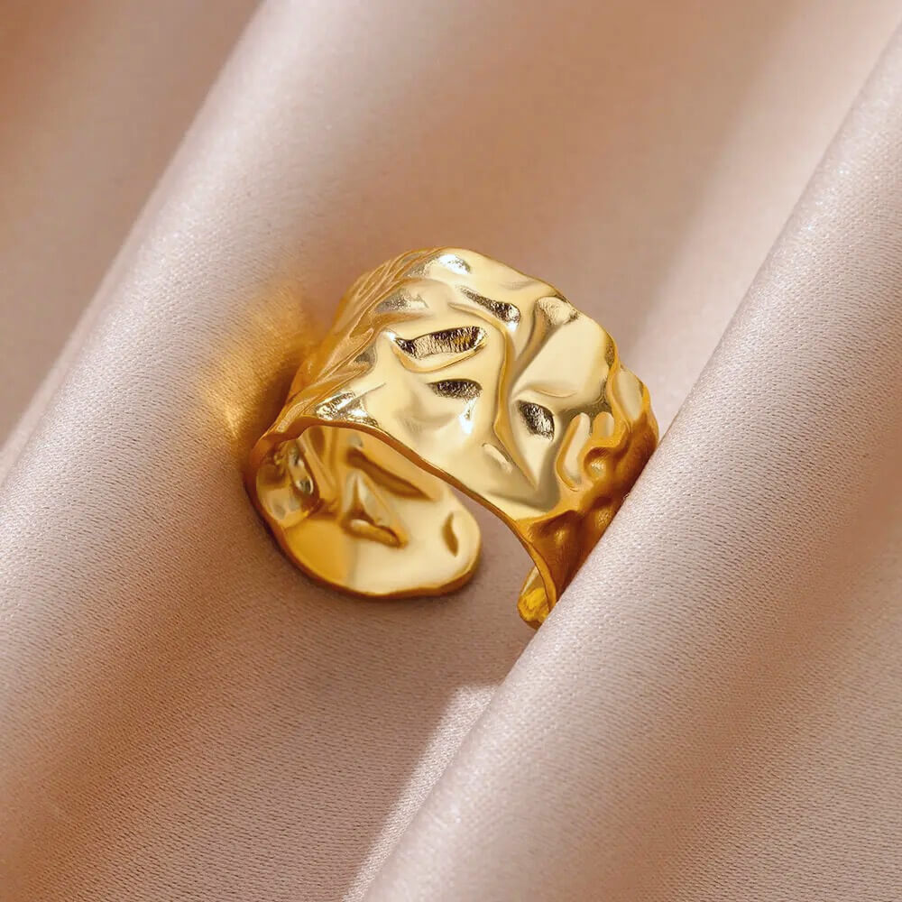 Anillo Acero Tribu Dorada en tono dorado ajustable entre talla 6 y 8 Diseño clásico y delicado para usarlo con tu ropa preferida, ya sea deportiva, formal o informal con un toque muy femenino, elegante y de moda. Para ver otros diseños disponibles en collares para mujer, da clic aca.