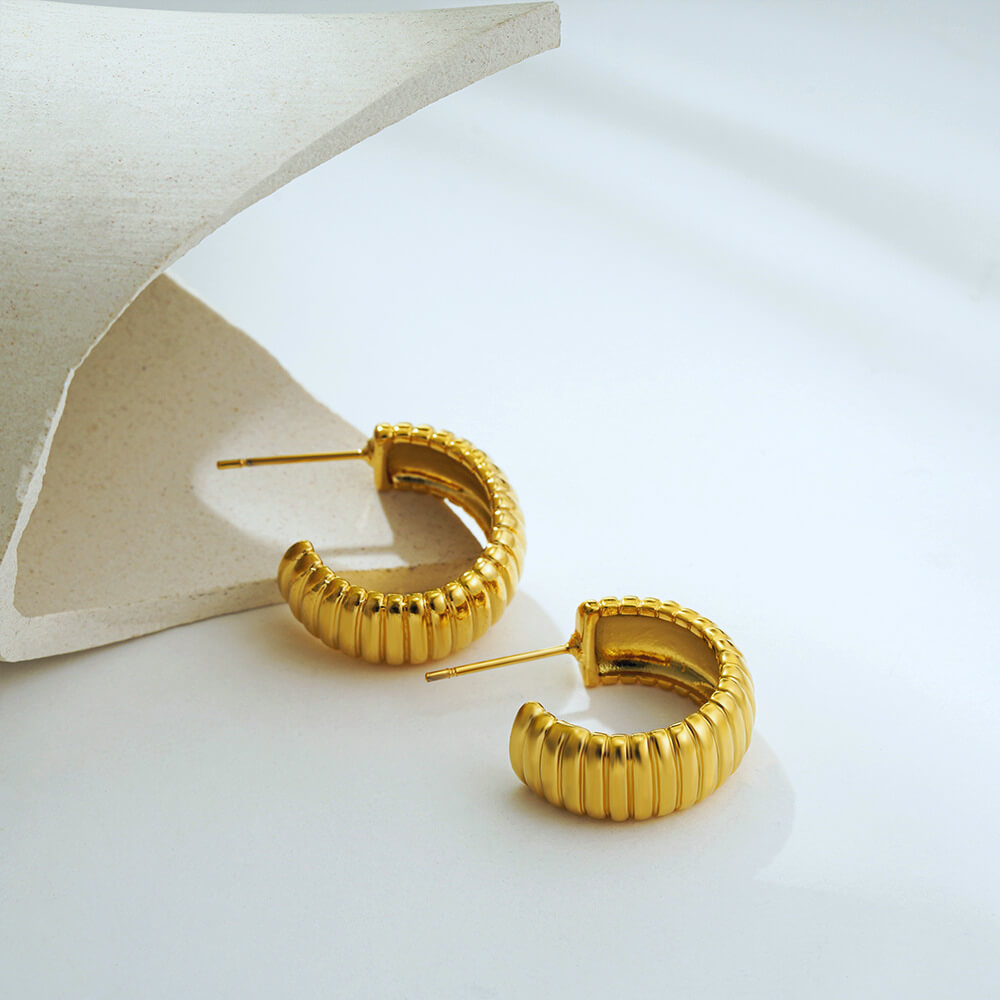 Arete Acero Bruma Dorada en tono dorado con alto de 2.2 cms y ancho de 1.3 cms. Diseño divertido, diferente con un estilo delicado para combinarlo como quieras, ideal para tu look casual o informal o ir a trabajar y con un toque muy femenino y de moda. Paraver Otros productos disponibles en aretes.