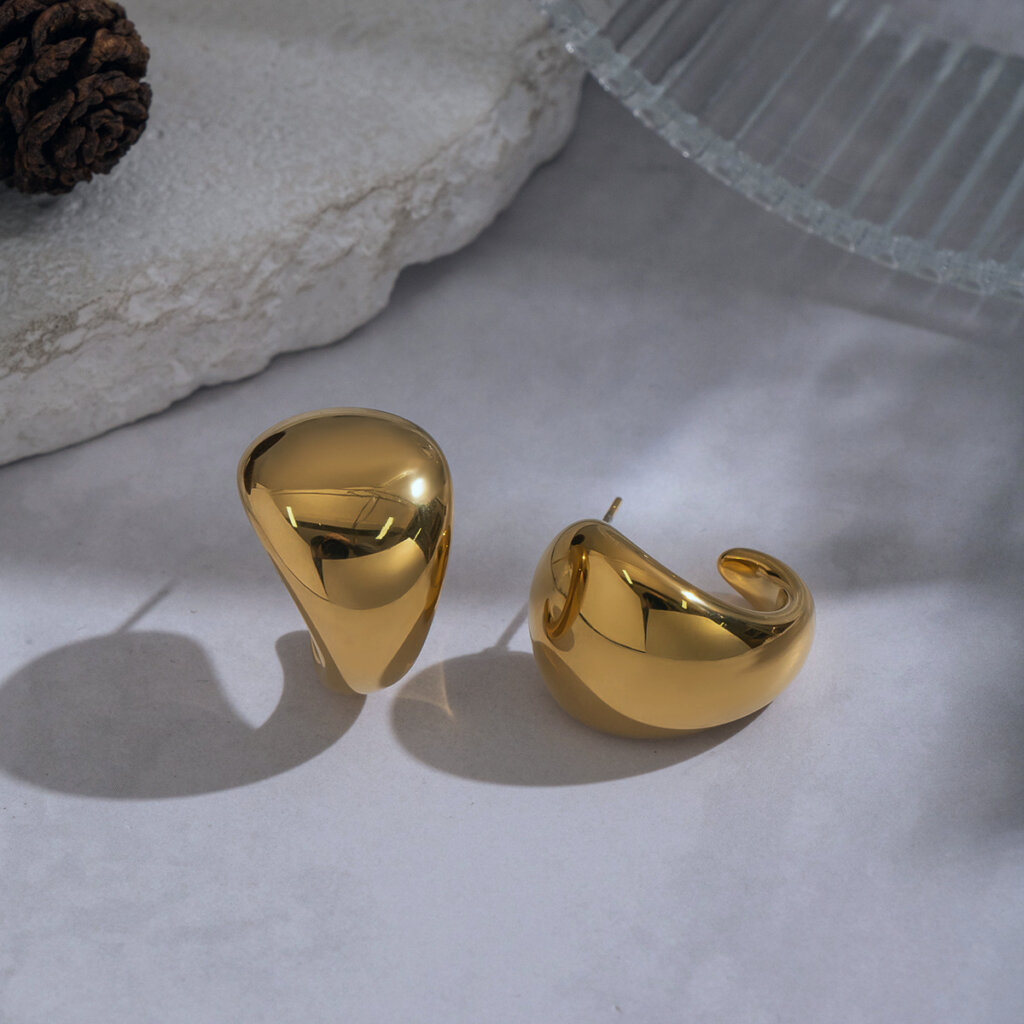 Arete Acero Origen Puro en tono dorado con alto de 2.2 cms y ancho de 1.4 cms. Diseño divertido, diferente con un estilo delicado para combinarlo como quieras, ideal para tu look casual o informal o ir a trabajar y con un toque muy femenino y de moda. Paraver Otros productos disponibles en aretes.