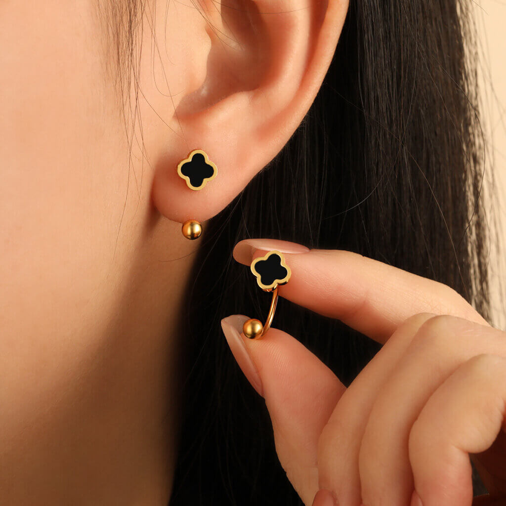 Aretes Acero Floralia en todo dorado con tamaño de 1.5 y tamaño del trebol de 0.7 cms. Diseño divertido, diferente con un estilo delicado para combinarlo como quieras, ideal para tu look casual o informal o ir a trabajar y con un toque muy femenino y de moda. Otros productos disponibles en aretes.