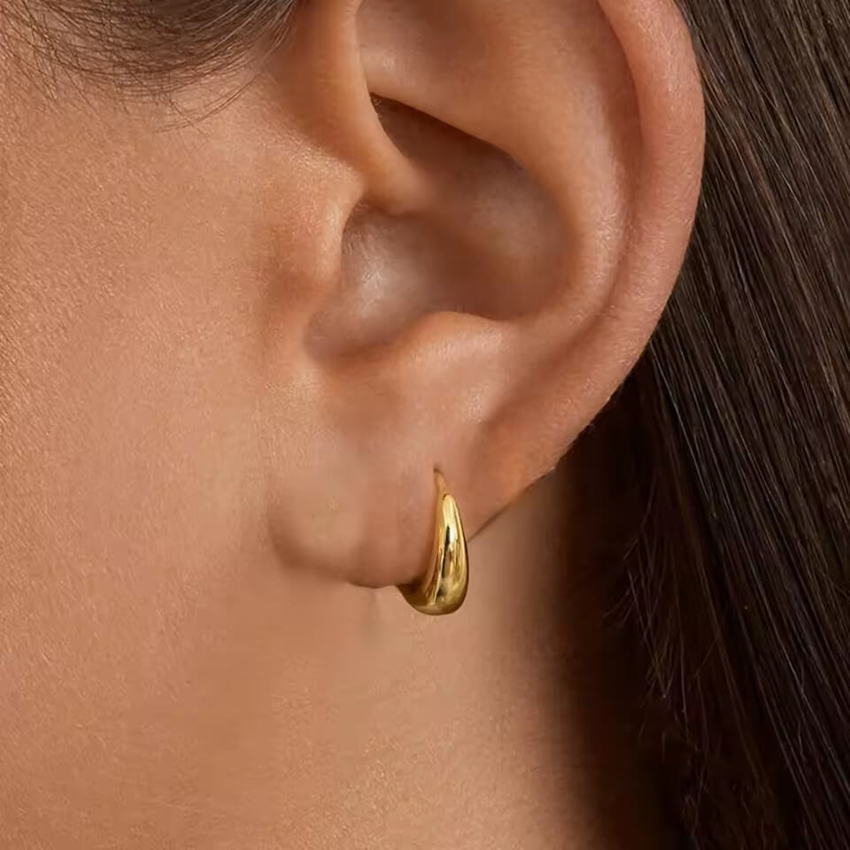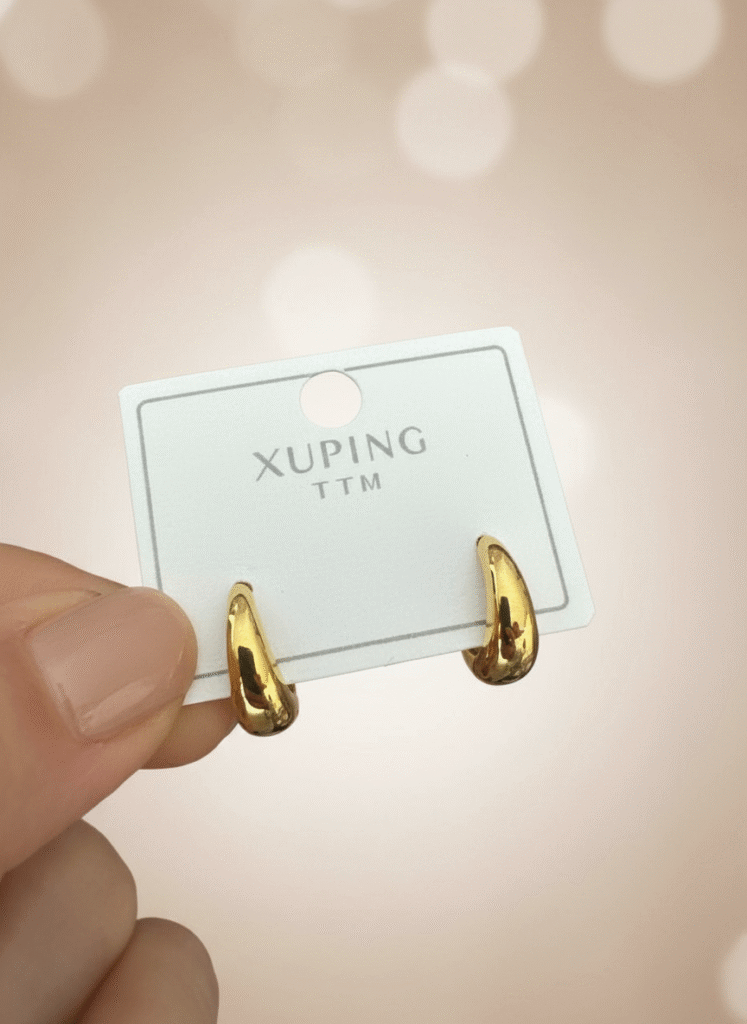 Aretes Acero Fuerza Dulce en tono dorado con tamaño de 1.3 cms y ancho en la parte central 0.5 cms. Diseño divertido, diferente con un estilo delicado para combinarlo como quieras, ideal para tu look casual o informal o ir a trabajar y con un toque muy femenino y de moda. Para ver Otros productos disponibles en aretes.