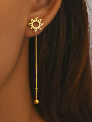 Aretes Acero Luminosidad en tono dorado con largo de 5 cms. Diseño divertido, diferente con un estilo delicado para combinarlo como quieras, ideal para tu look casual o informal o ir a trabajar y con un toque muy femenino y de moda. Para ver Otros productos disponibles en aretes.