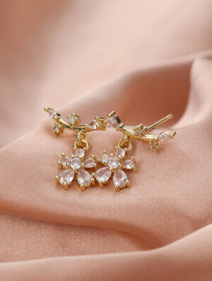 Aretes Mujer Entre Petalos en bronce chapados en oro 18K con tamaño de 1.8 cms. Diseño divertido, diferente con un estilo delicado para combinarlo como quieras, ideal para tu look casual o informal o ir a trabajar y con un toque muy femenino y de moda. Otros productos disponibles en aretes.