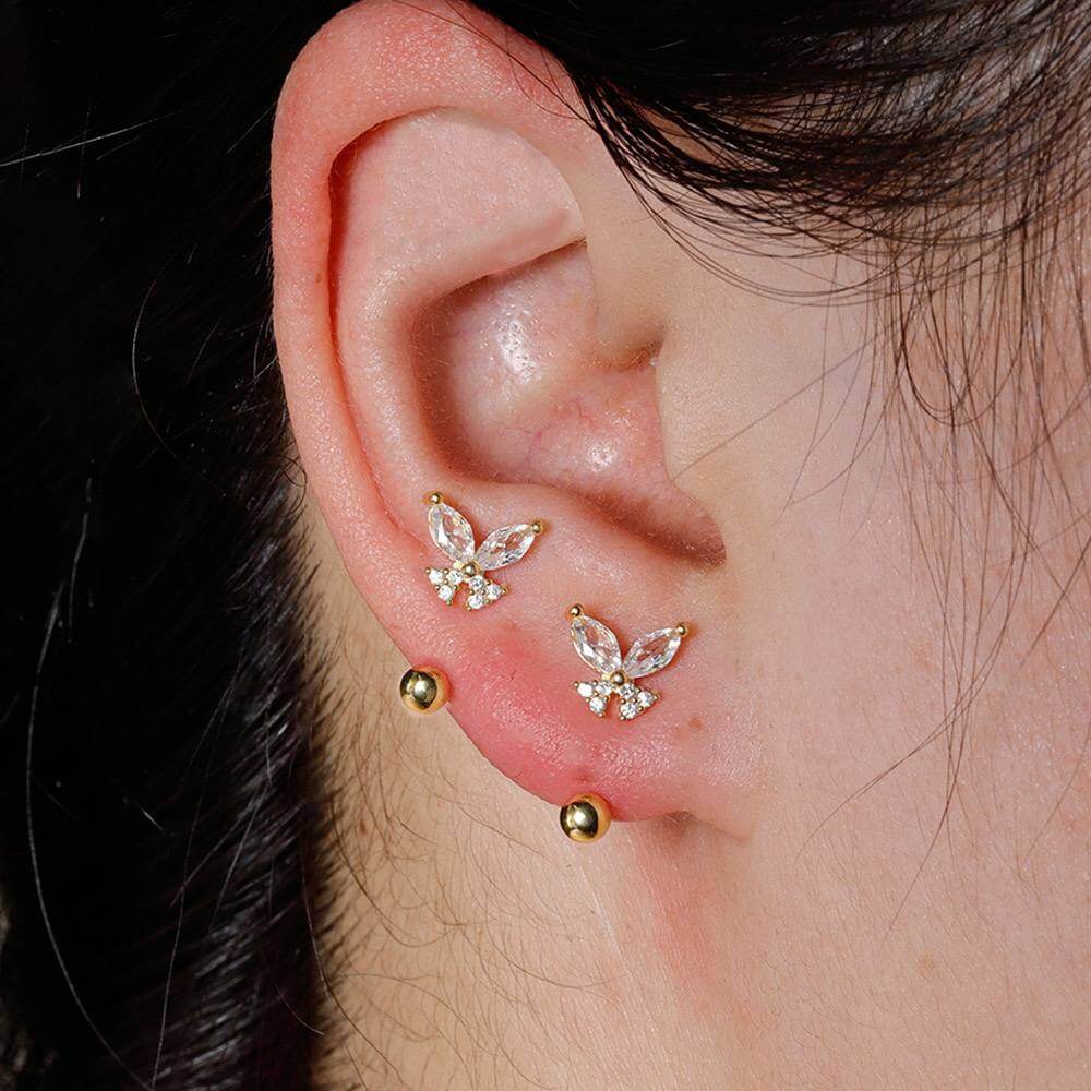 Aretes Mujer Mariposa Diamante en bronce bañados en oro 18K con tamaño de 1.3 cms y micro circones. Diseño divertido, diferente con un estilo delicado para combinarlo como quieras, ideal para tu look casual o informal o ir a trabajar y con un toque muy femenino y de moda. Otros productos disponibles en aretes.