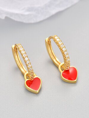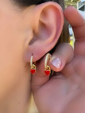 Aretes Mujer Romance Vivo en bronce chapados en oro 18K con diametro de 1.2 cms y tamaño corazon 0.5 cms. Diseño divertido, diferente con un estilo delicado para combinarlo como quieras, ideal para tu look casual o informal o ir a trabajar y con un toque muy femenino y de moda. Otros productos disponibles en aretes.