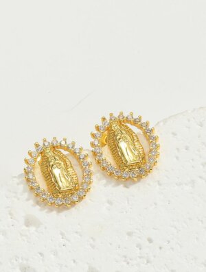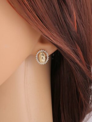 Aretes Mujer Virgen Radiante en tono dorado en bronce bañados en oro 18K. Diseño original y diferente con un estilo delicado para combinarlo como quieras, ideal para tu look casual o informal o ir a trabajar y con un toque muy femenino y de moda. Otros productos disponibles en aretes.