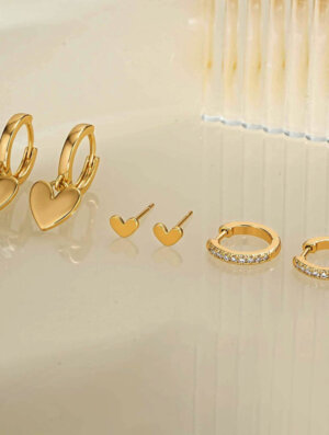 Set Aretes Dulce Dorado en tono dorado, set por 3 aretes. Diseño clásico y delicado para usarlo con tu ropa preferida, ya sea deportiva, formal o informal con un toque muy femenino, elegante y de moda. Para ver otros diseños disponibles en collares para mujer, da clic aca.