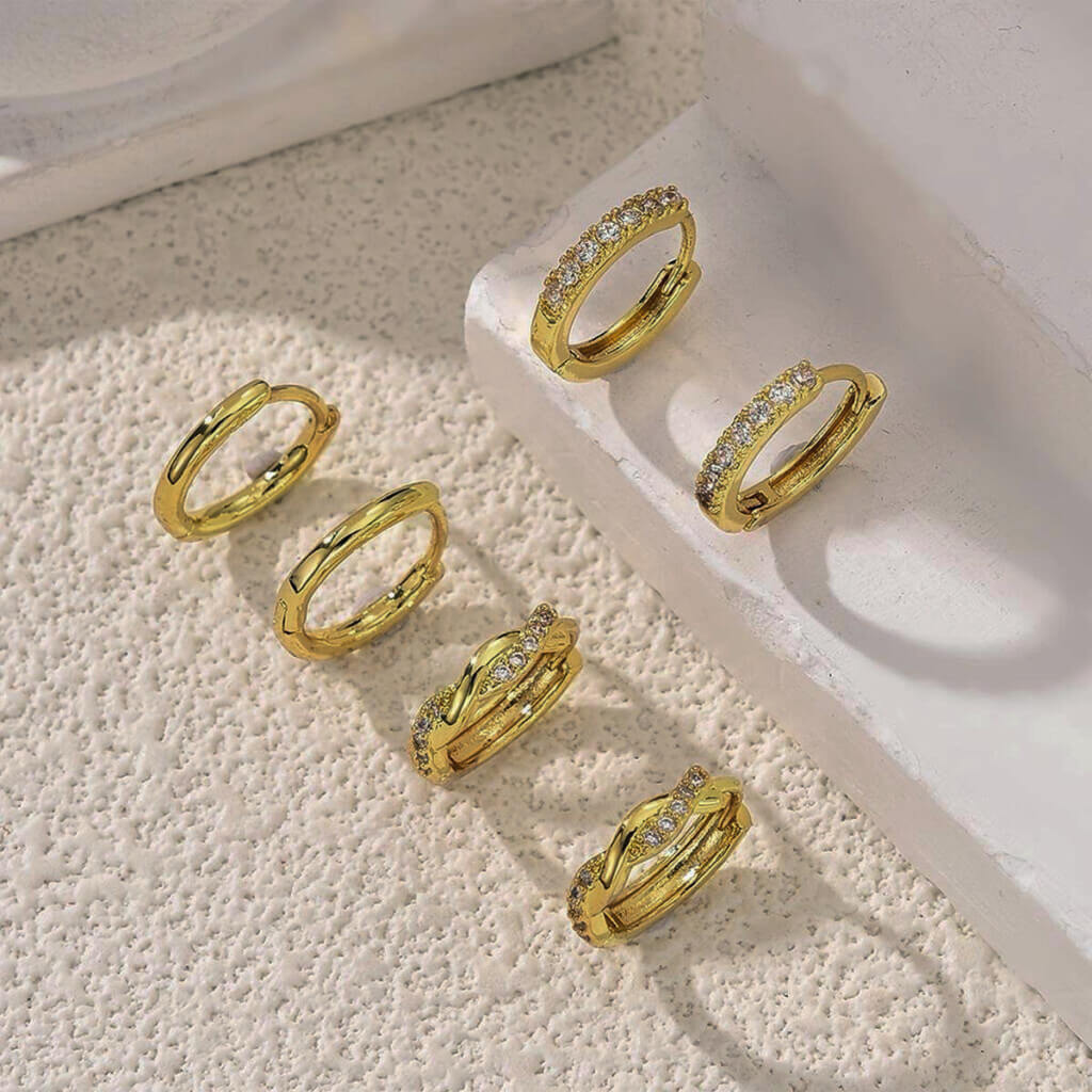 Set Aretes Piedras de-Luz en tono dorado en bronce bañados en oro 18K. Diseño original y diferente con un estilo delicado para combinarlo como quieras, ideal para tu look casual o informal o ir a trabajar y con un toque muy femenino y de moda. Otros productos disponibles en aretes.