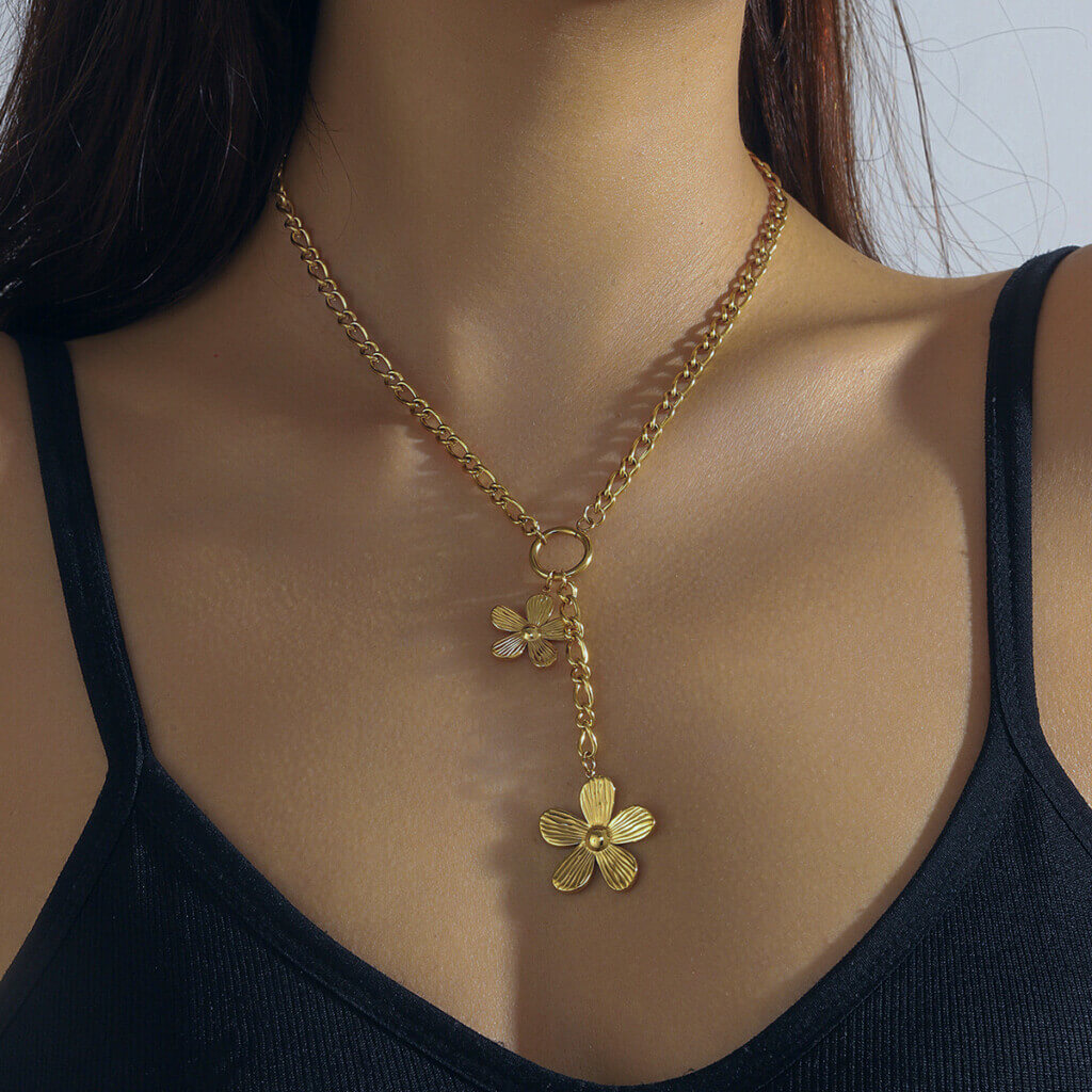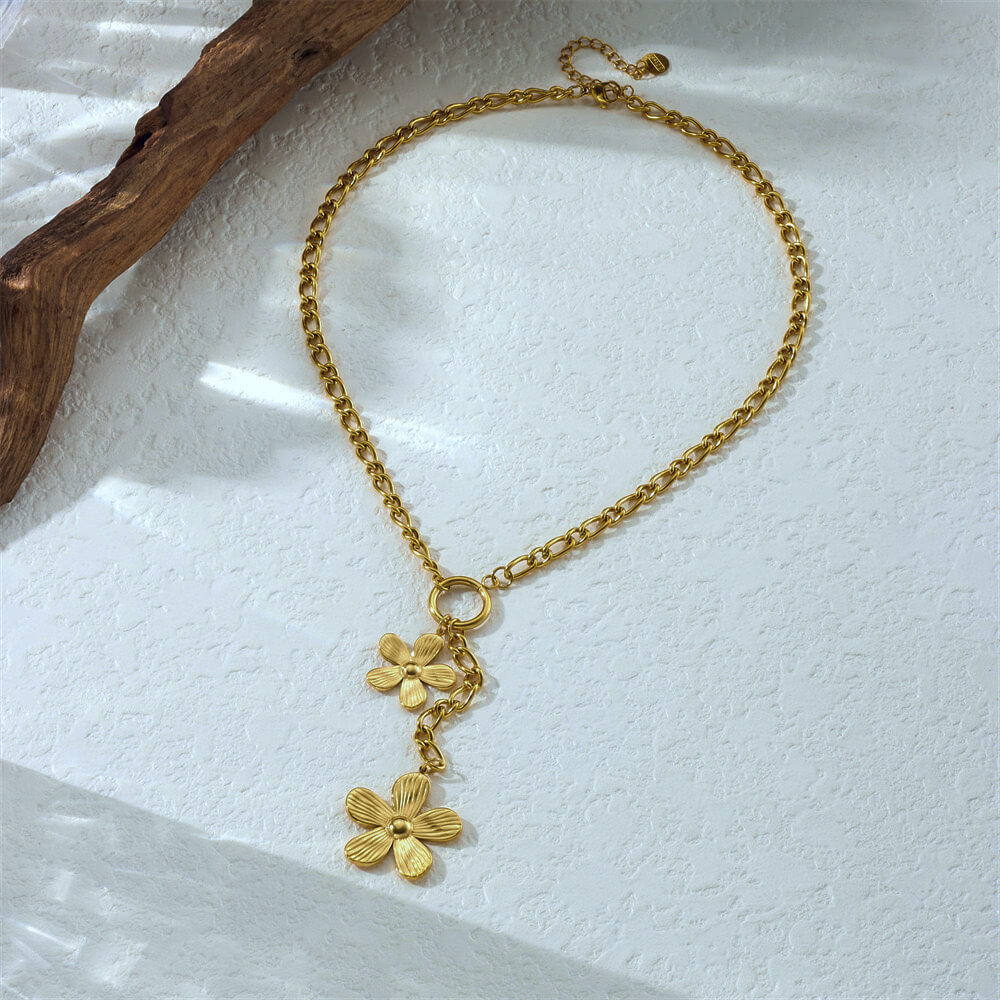 Collar Acero Petalos de-Oro
