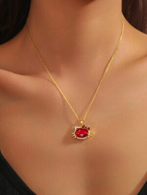 Collar Hello Kitty Carmesi en bronce bañado en oro 18K, dije con micro circones, con largo de 39 cms y cadena extensora de 6 cms. Diseño clásico y delicado para usarlo con tu ropa preferida, ya sea deportiva, formal o informal con un toque muy femenino, elegante y de moda. Para ver otros diseños disponibles en collares para mujer, da clic aca.