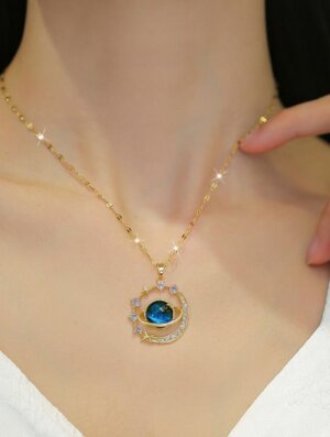 Collar Mujer Destello Azul con cadena en acero con largo de 45 cms y dije en bronce bañado en oro 18K y micro circones. Diseño clásico y delicado para usarlo con tu ropa preferida, ya sea deportiva, formal o informal con un toque muy femenino, elegante y de moda. Para ver otros diseños disponibles en collares para mujer, da clic aca.