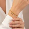 Pulsera Mujer Resplandor en tono dorado con largo de 16 cms y cadena extensora de 3 cms. Diseño clásico y delicado para usarlo con tu ropa preferida, ya sea deportiva, formal o informal con un toque muy femenino, elegante y de moda. Para ver otros diseños disponibles en collares para mujer, da clic aca.