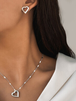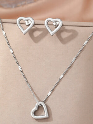 Set Acero Beso de-Plata en tono plateado que incluye aretes y collar. Diseño clásico y delicado para usarlo con tu ropa preferida, ya sea deportiva, formal o informal con un toque muy femenino, elegante y de moda. Para ver otros diseños disponibles en collares para mujer, da clic aca.