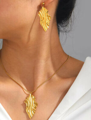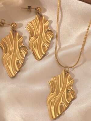 Set Acero Luz Interior en tono dorado que incluye collar y aretes. Diseño clásico y delicado para usarlo con tu ropa preferida, ya sea deportiva, formal o informal con un toque muy femenino, elegante y de moda. Para ver otros diseños disponibles en collares para mujer, da clic aca.