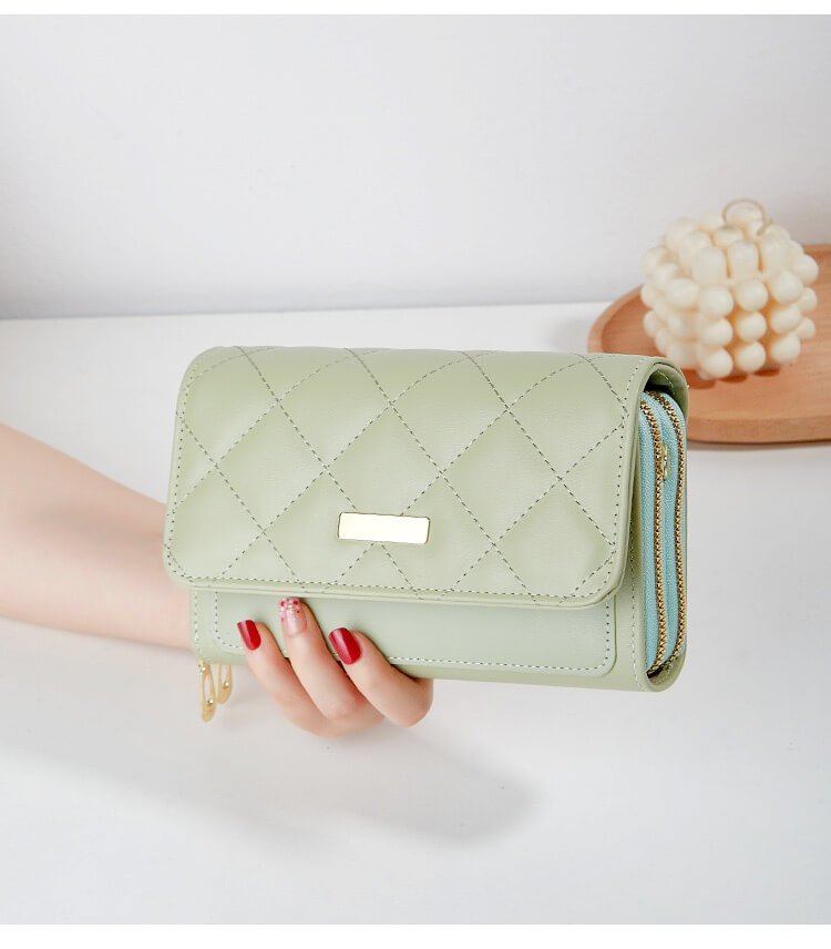 Bolso Billetera Sutil Pistacho en cuero sintético con 2 divisiones para incluir documentos, dinero, celular y monedas. Ideal para guardar tus documentos y algunas cosas mas de uso personal. Medidas: 19 cms de ancho, 12 cms de alto, 4 cms de profundo. Para ver mas diseños en complementos de moda da clic aca.