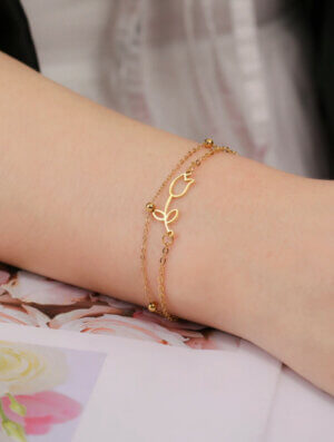 Pulsera Acero Florecer Eterno en tono dorado con tamaño de 15 cms y cadena extensora de 5 cms . Lindo diseño con un toque muy femenino y delicado para usar en cualquier ocasión y lucir a la moda. Para ver mas diseños en pulseras disponibles para mujer, da clic aca. El acero si se puede mojar y nuestros articulos en este material tienen 2 meses de garantía.