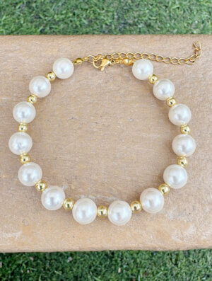 Pulsera Perla Shell Maxi hecha en perla de alta calidad, conocida como perla shell lo que significa que es fabricada a partir de polvo de nacar o concha de ostras . Lindo diseño con un toque muy femenino y delicado para usar en cualquier ocasión y lucir a la moda. Para ver mas diseños en pulseras disponibles para mujer, da clic aca.