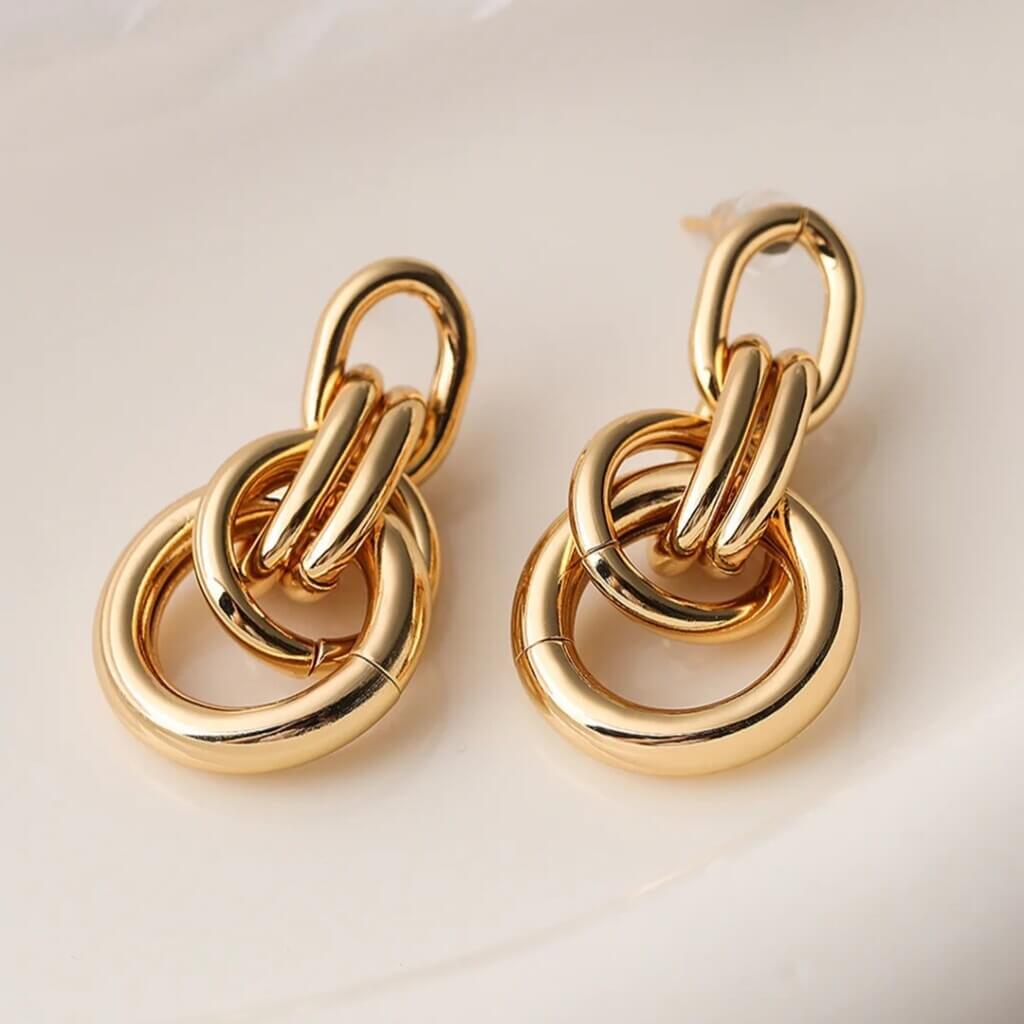 OUTLET Aretes Alma de-Oro en bronce chapados en oro 18K con tamaño de 3.6 cms. Diseño divertido, diferente con un estilo delicado para combinarlo como quieras, ideal para tu look casual o informal o ir a trabajar y con un toque muy femenino y de moda. Otros productos disponibles en aretes.