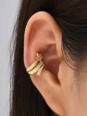 OUTLET Ear Cuff Brillo para mujer en tono dorado con bronce bañado en oro 18k y micro circones. Lindo, divertido y delicado diseño para combinarlo como quieras. Ideal para tu look casual, informal y de trabajo con un toque muy femenino, único y de moda. Otros productos disponibles en aretes.23